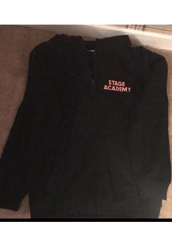 Personalised Stage Academy Zip-Up with Stage Academy logo on front and back and Students name on arm.