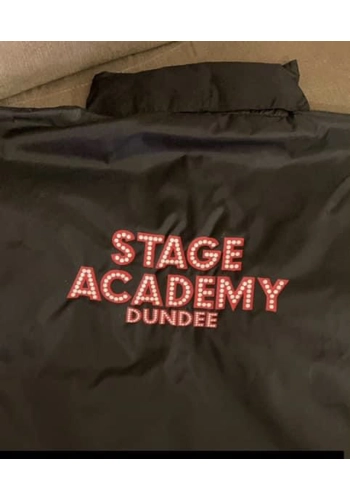 Rain Jacket style with Stage Academy Logo and Students name.